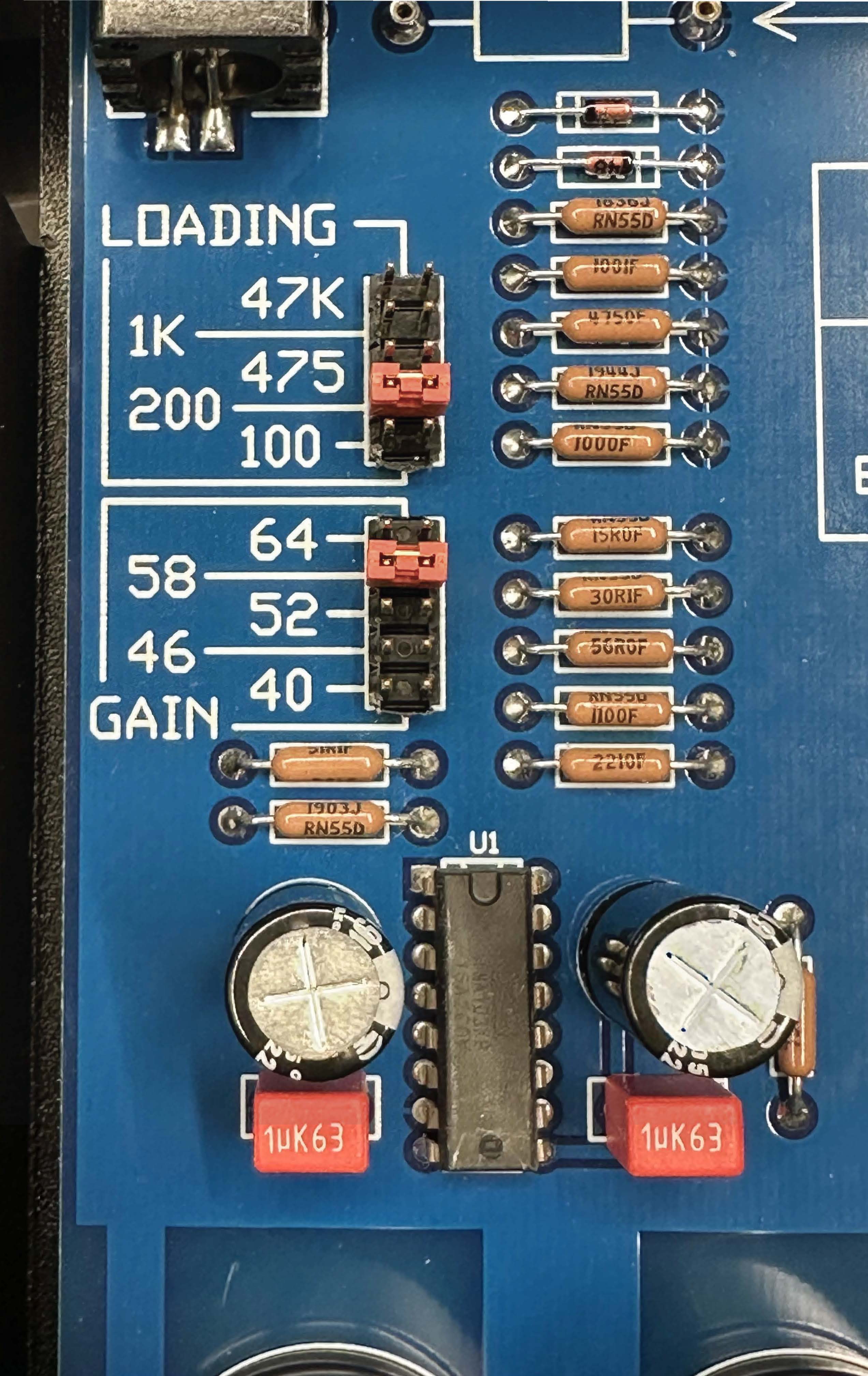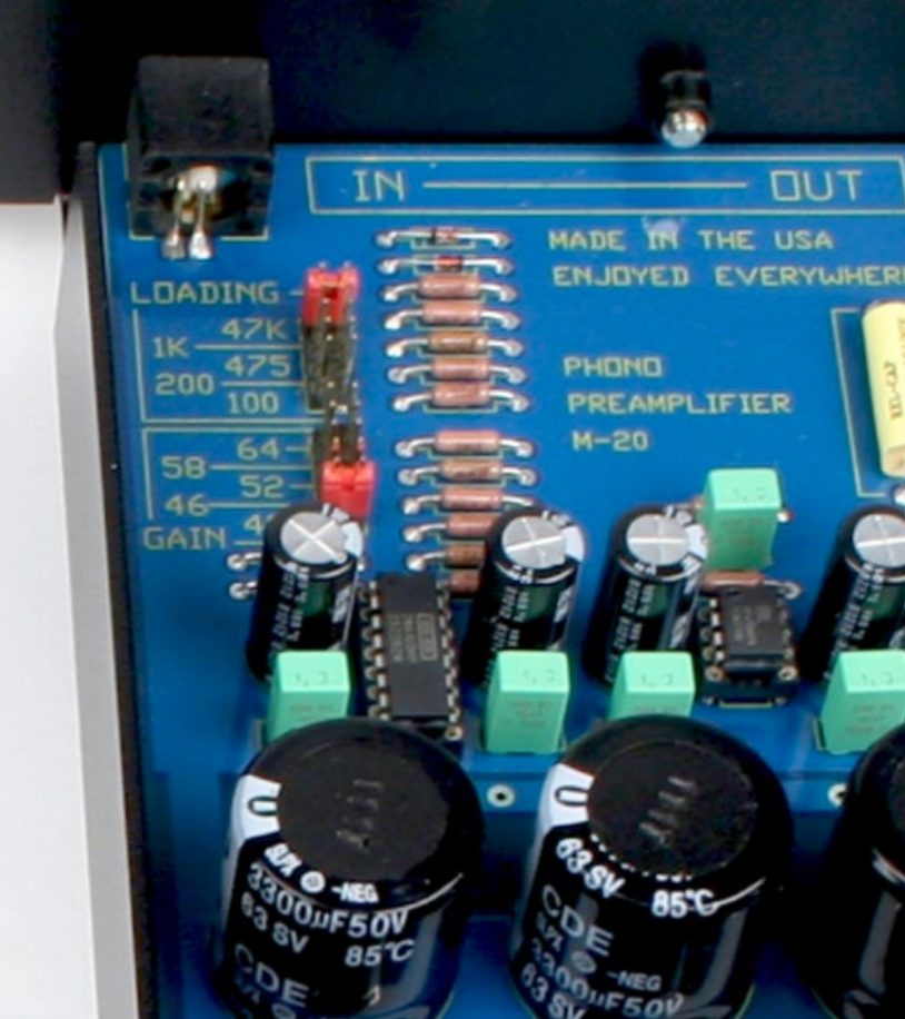 There are five available loading settings. Loading is set using the supplied, gold-plated shunts. There is a load setting header block for each channel. Position the shunt to the desired loading value. Be sure to set the loading of each channel to the same value.